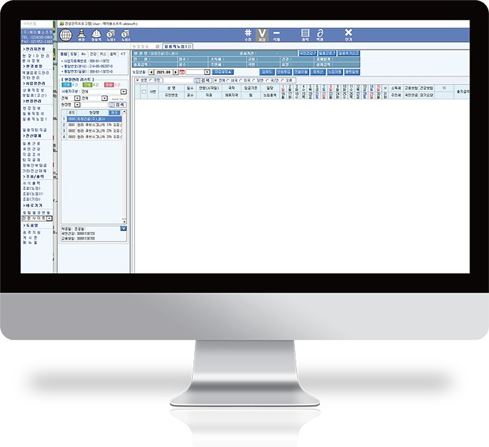 작업일보, 출역일보, 출역현황, 노무비 현황, 급여명세서, 보험료집계 등 용이함